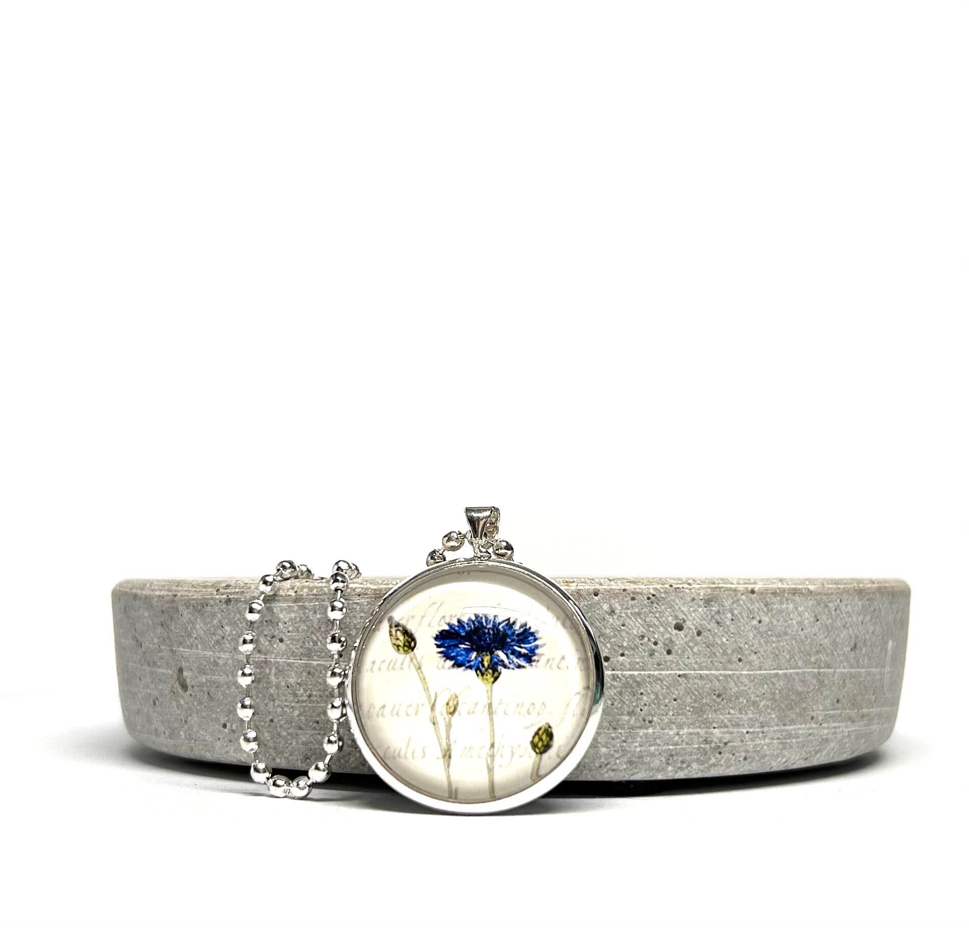 Motiv blaue Kornblume auf weißem Hintergrund.