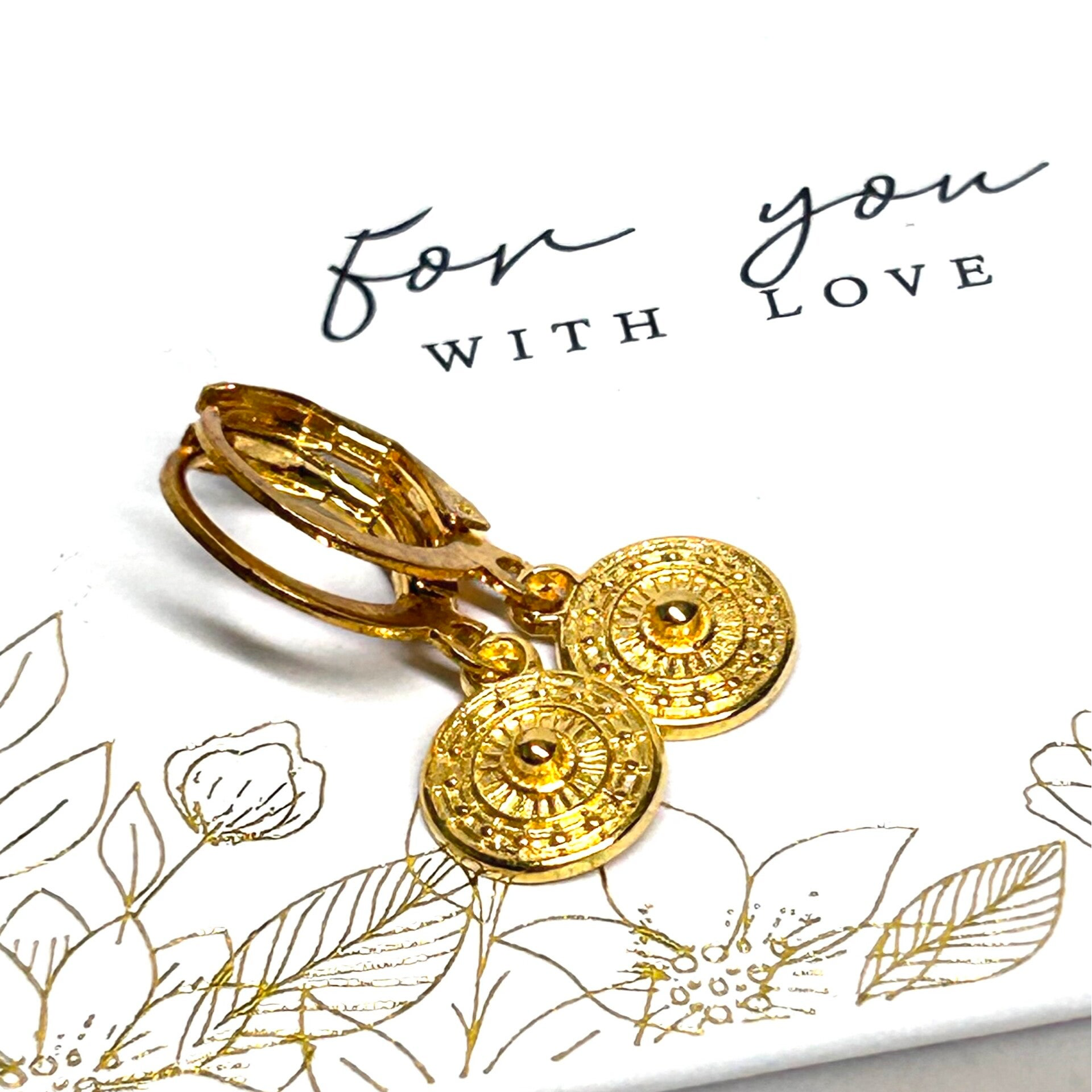 Leverback Ohrringe aus Edelstahl mit Medaillon Anhängern.