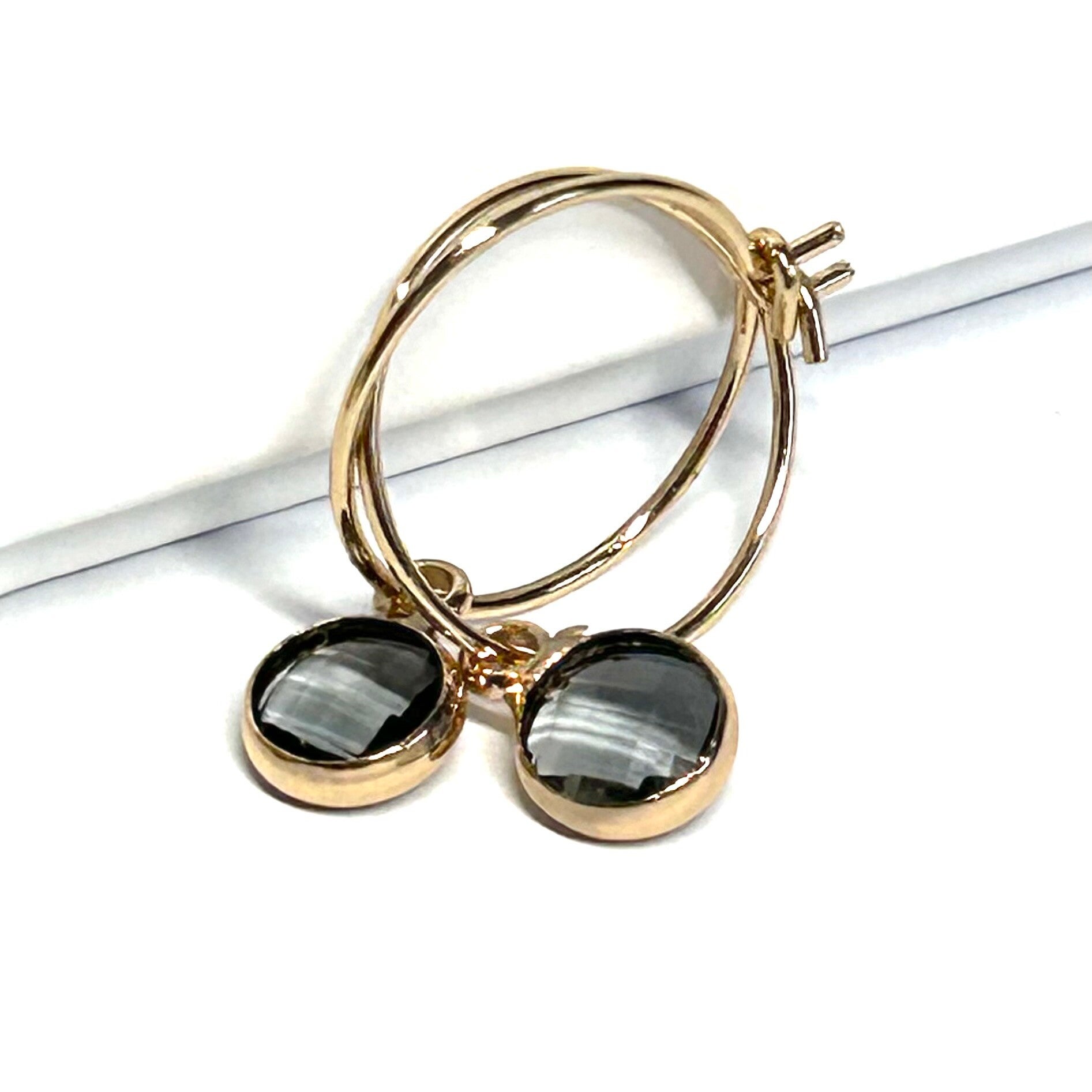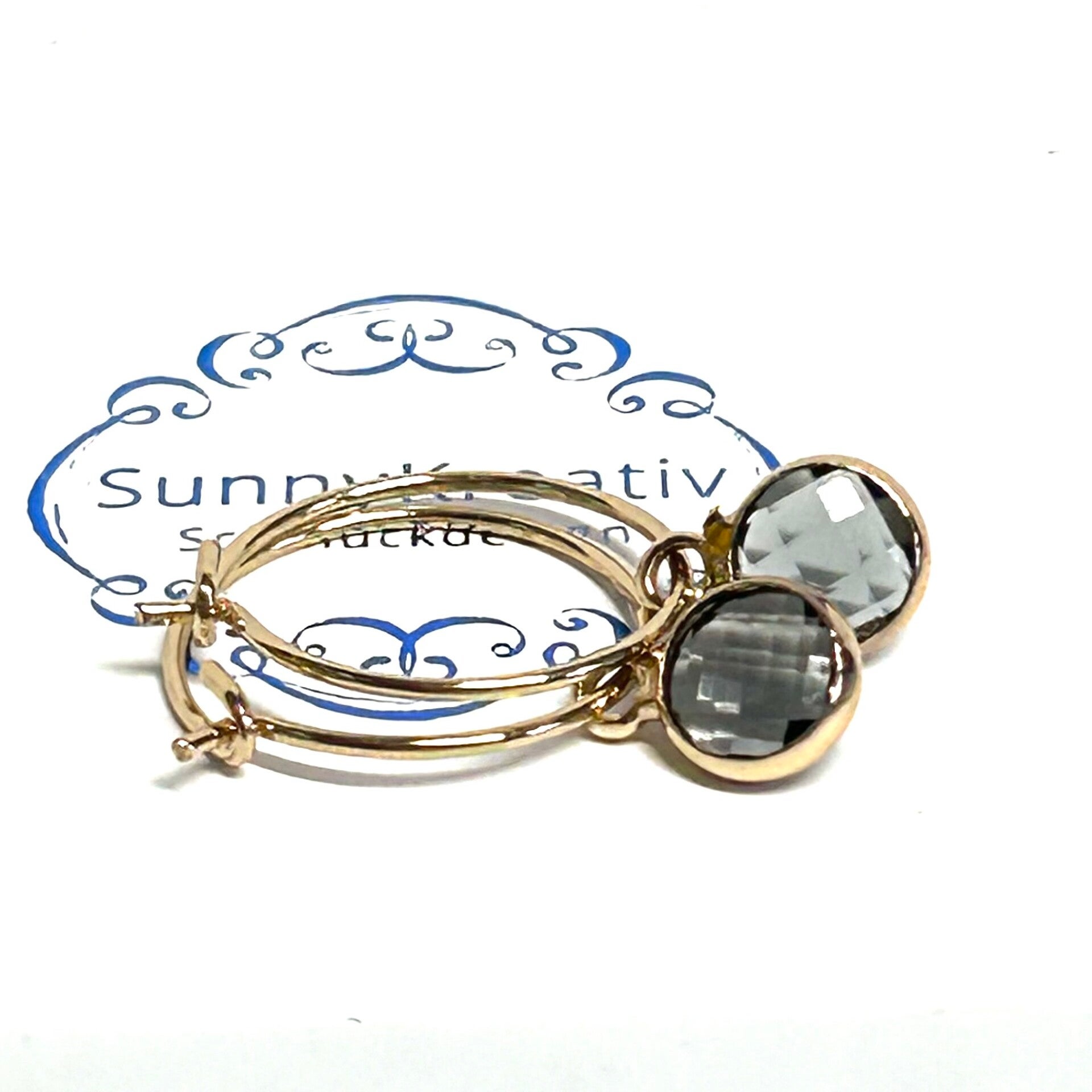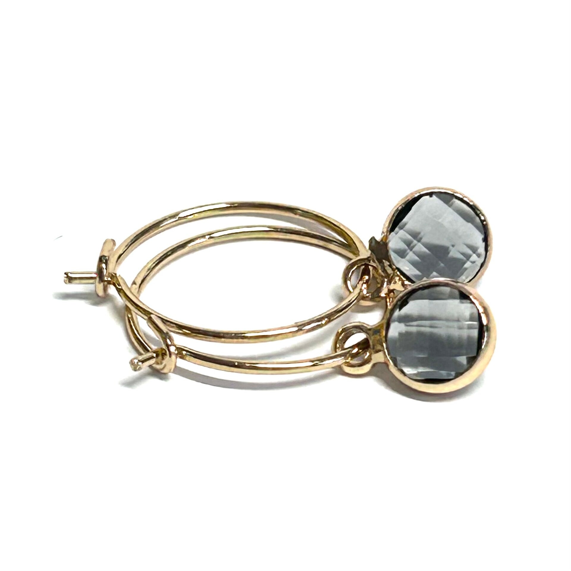15mm Hoops mit facettierten Kristallglas Anhängern in Rauchblau.