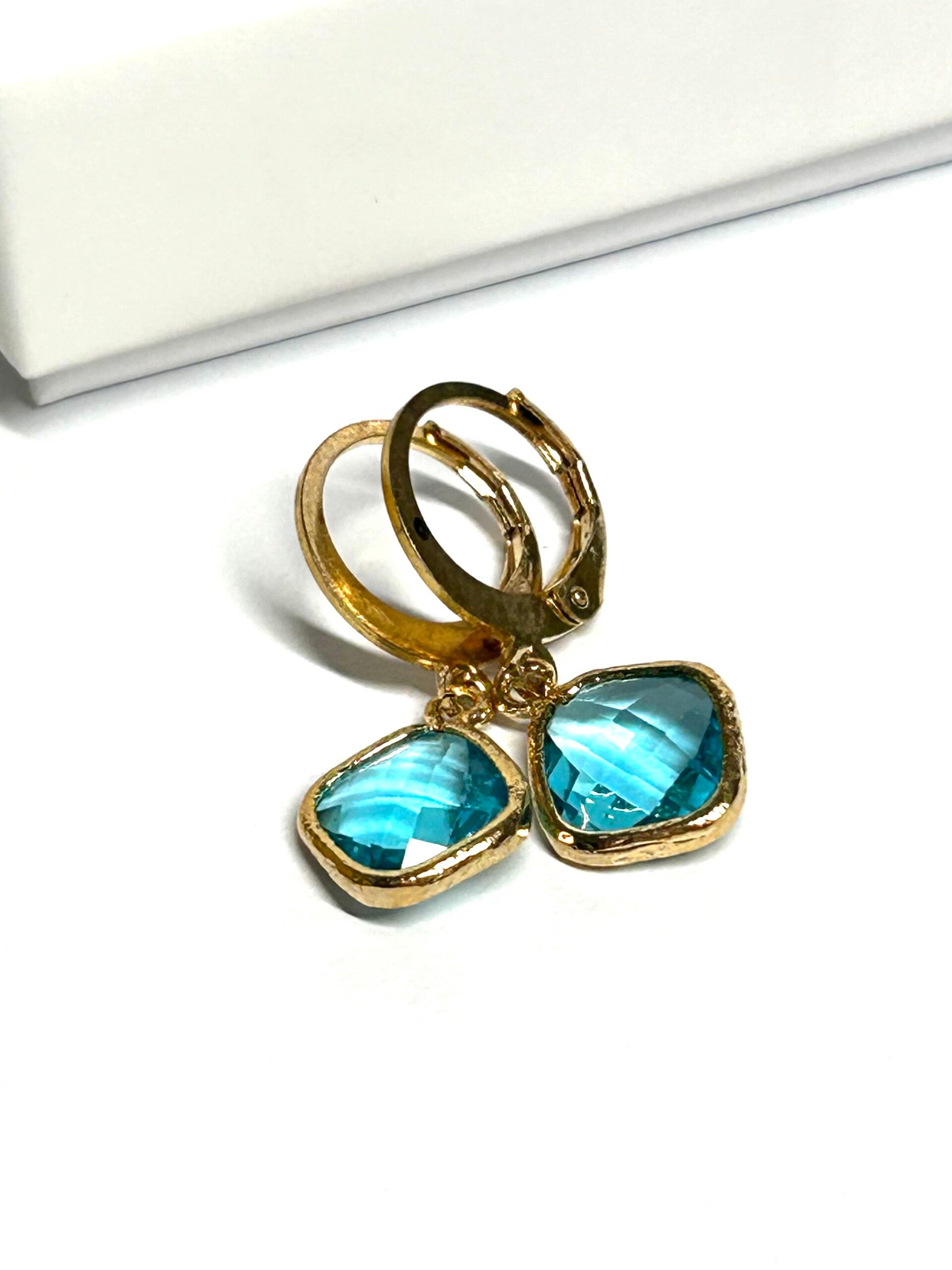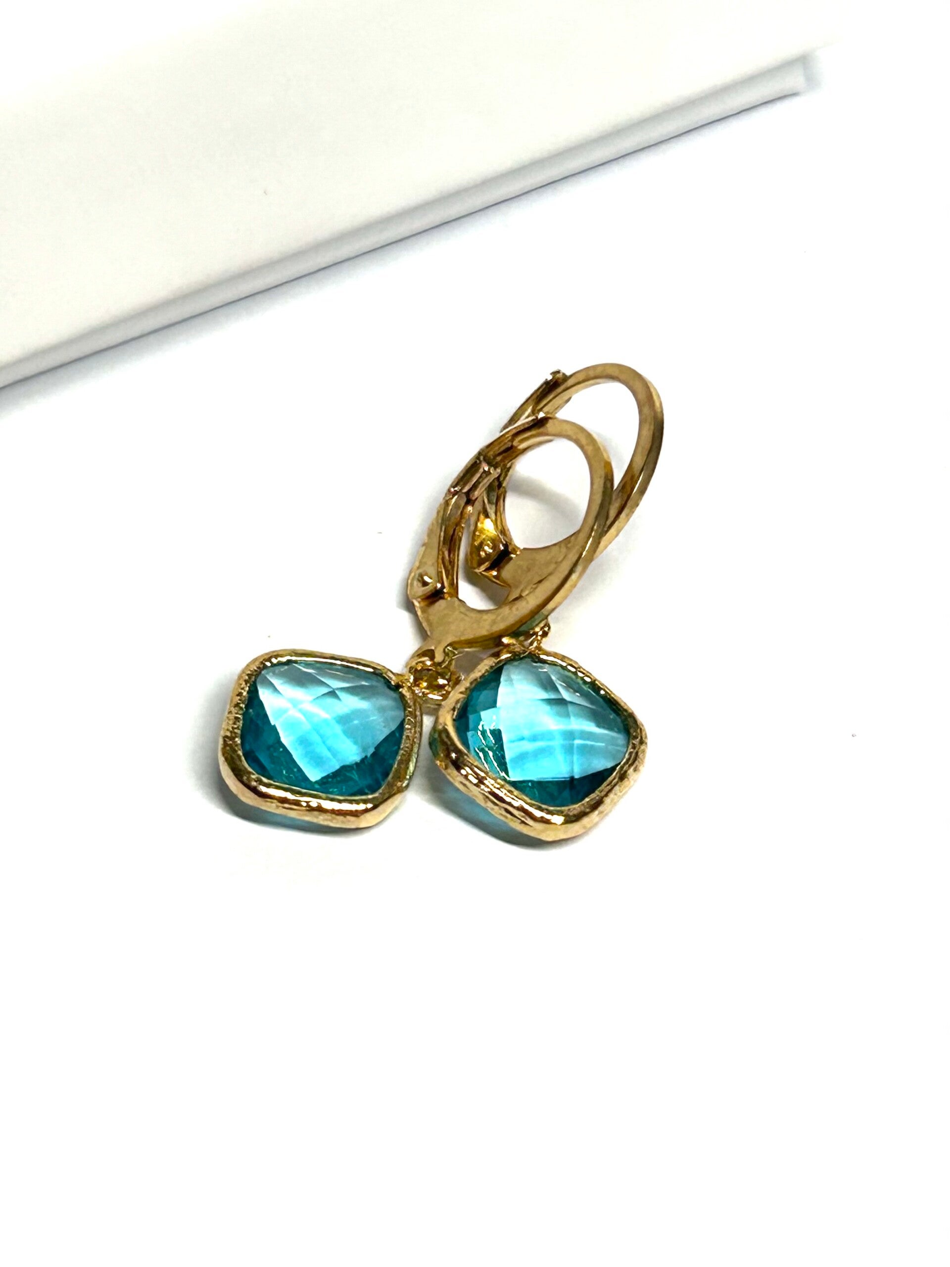 Ohrringe mit Kristallglas Anhänger in Türkis Gold