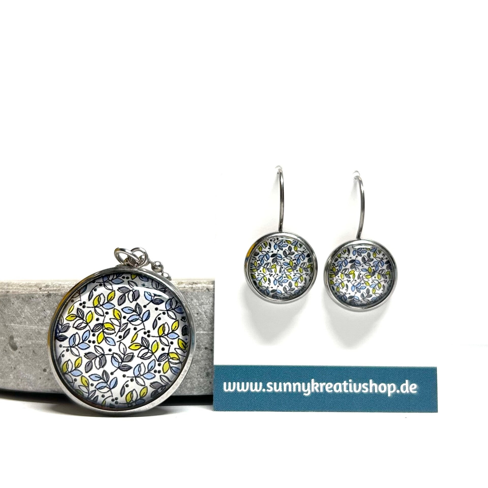 Schmuckset mit Motiv Blätter in Blau und Grün
