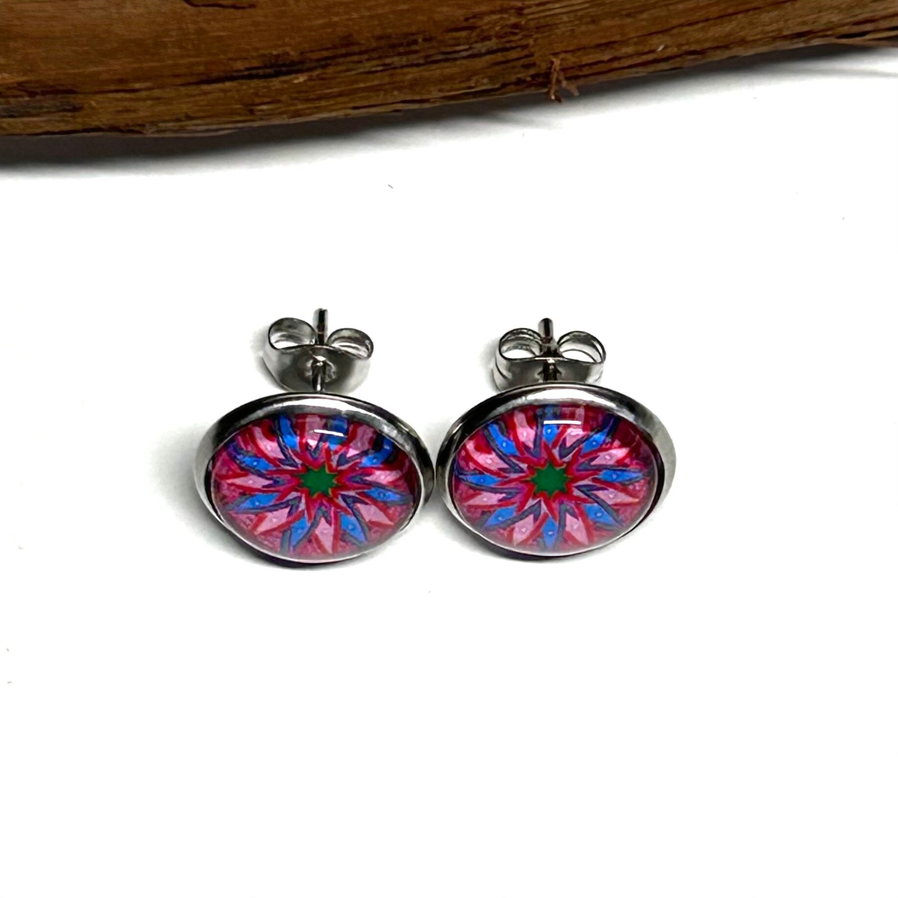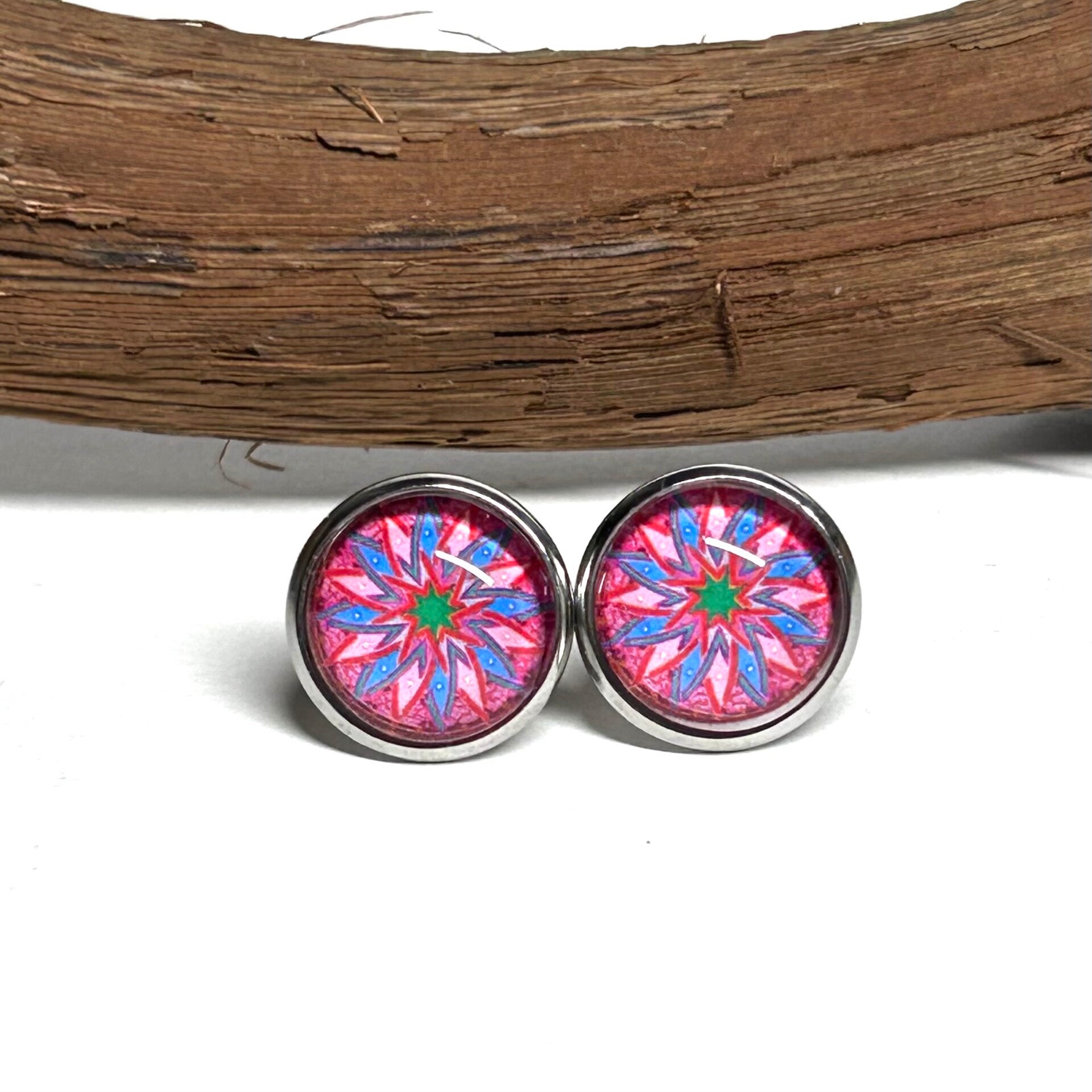 Ohrstecker aus Edelstahl mit einem 12mm großem Mandalamotiv.