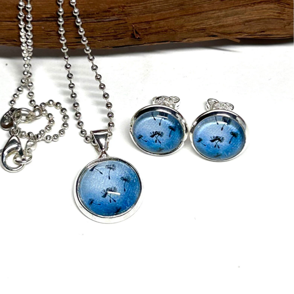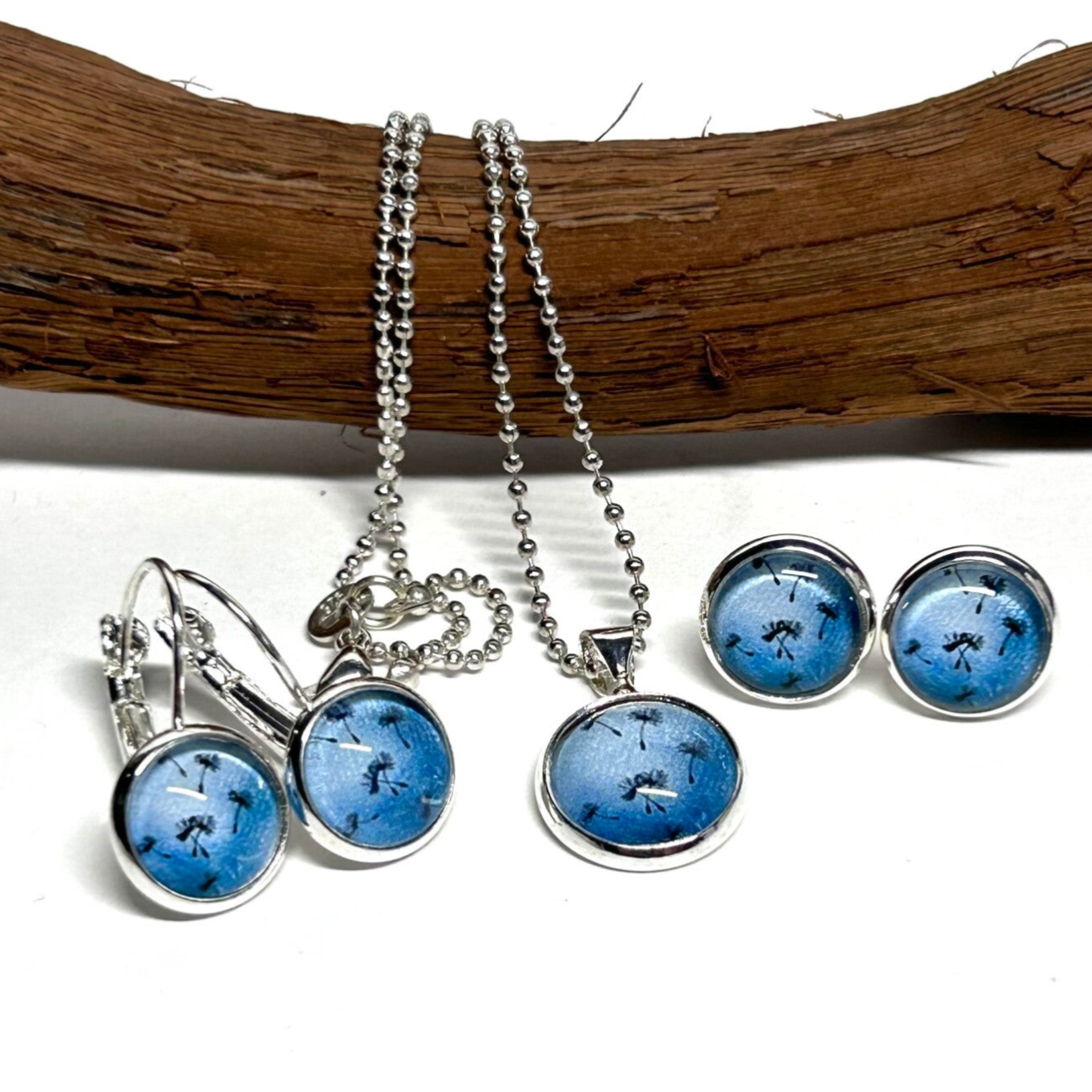 Edles Schmuckset in Silber mit einer Kugelkette mit Anhänger und ein paar Ohrstecker.