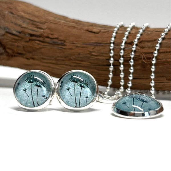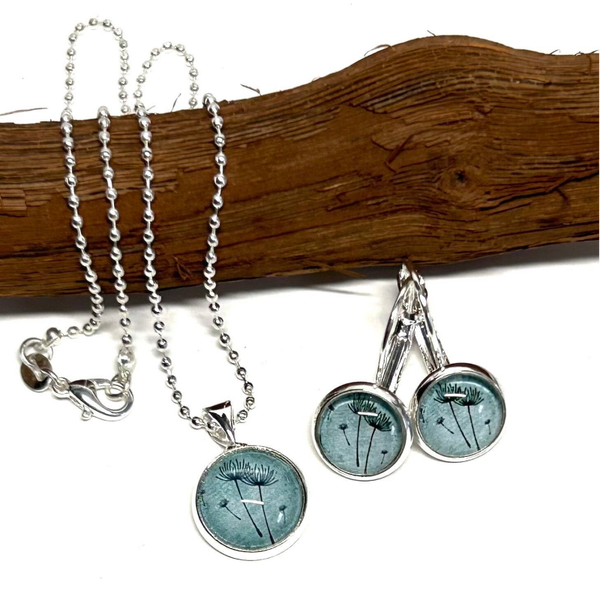 Edles Schmuckset in Silber mit einer Kugelkette mit Anhänger und ein paar Ohrstecker.